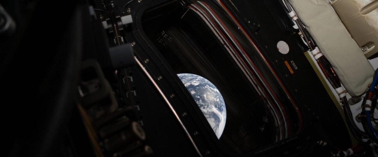 Una vista de la Tierra tomada por el astronauta de la NASA y comandante de Artemis II, Reid Wiseman, desde una de las cuatro ventanas principales de la nave espacial Orión. (Foto Prensa Libre: Cortesía NASA)