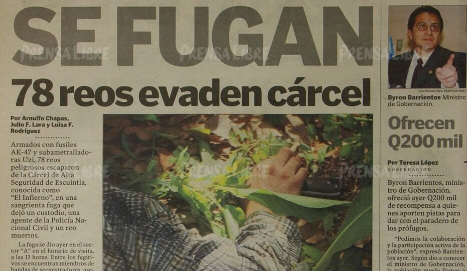 Byron Barrientos era el ministro de Gobernación y ofreció recompensa de Q200 mil para los ciudadanos que proporcionasen pistas para dar con el paradero de los fugados. El funcionario dio a conocer la captura de 16 custodios, así como del director y el subdirector de esa prisión. “Vamos a deducir responsabilidades. Esta fuga estaba planeada desde mucho tiempo atrás”, recriminó Barrientos en esa época.