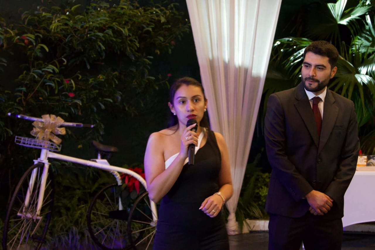 La aspirante a comisionada titular junto al magistrado de CC, Nester Vásquez, la magistrada suplente, Claudia Paniagua, y más personas. Fotografía: Redes sociales de Aspa.