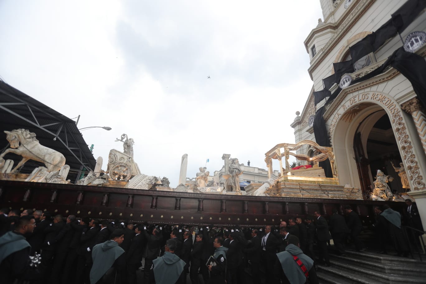 Bajo la lluvia de este Viernes Santo, la imagen del Santo Cristo Yacente, “Cristo de los Pobres”, inició a las 15 horas. Le acompaña la consagrada imagen de la Virgen de la Soledad para recorrer las calles de las zonas 1 y 3 capitalinas.