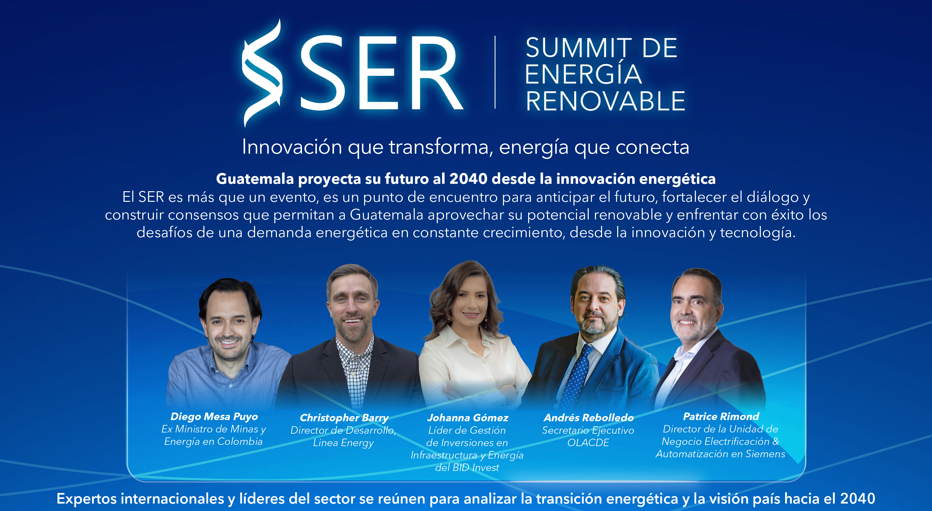 La segunda edición del Summit de Energía Renovable (SER) 2026, organizado por la Asociación de Generadores con Energía Renovable (AGER), el cual se posiciona como el principal espacio para analizar cómo la innovación, la tecnología y la inteligencia artificial están redefiniendo el futuro del sector eléctrico guatemalteco y abriendo nuevas oportunidades de desarrollo para el país, se realizará el 5 de febrero en el Centro de convenciones del Hotel Westin Camino Real a partir de las 8:00 de la mañana.